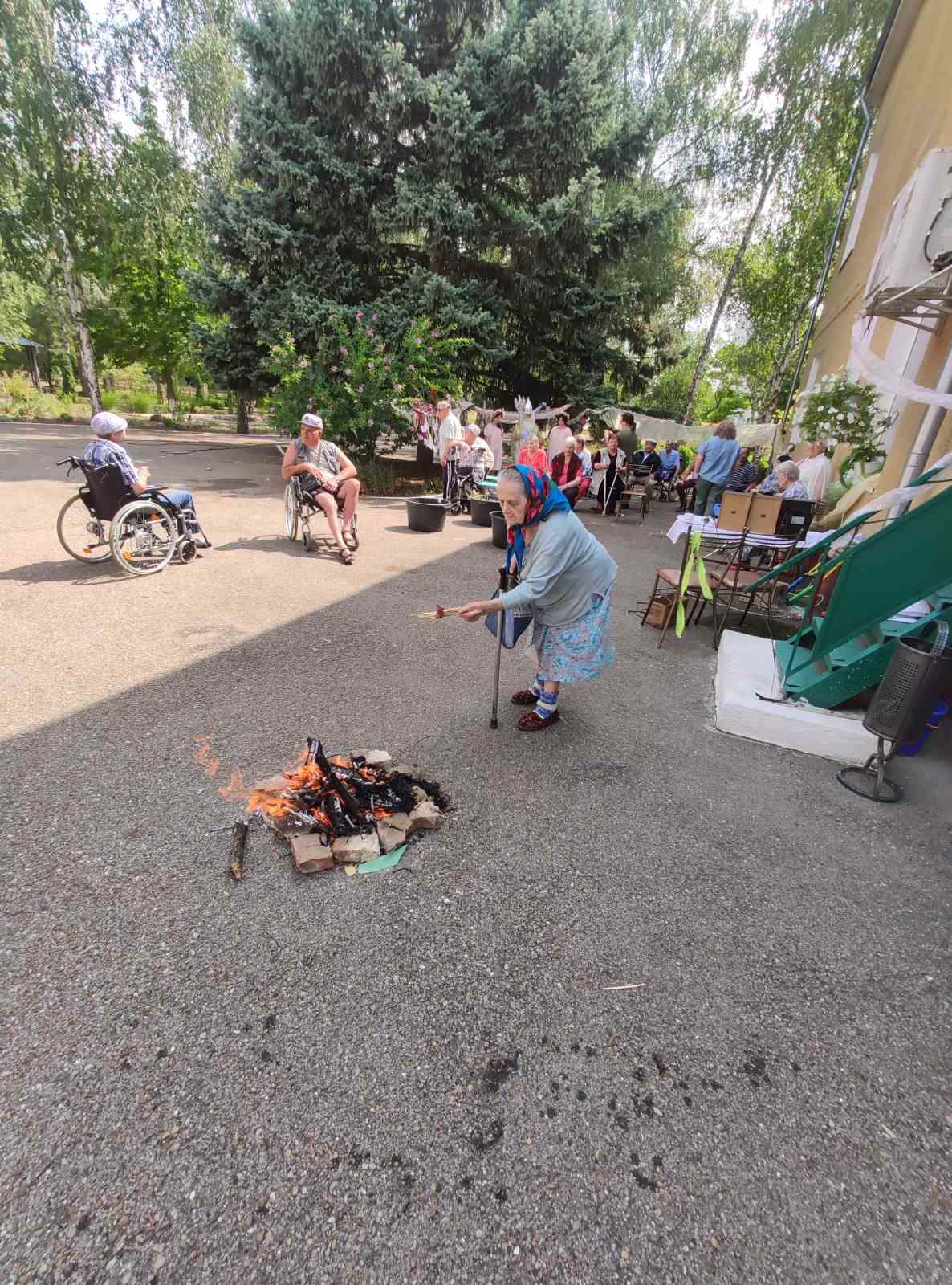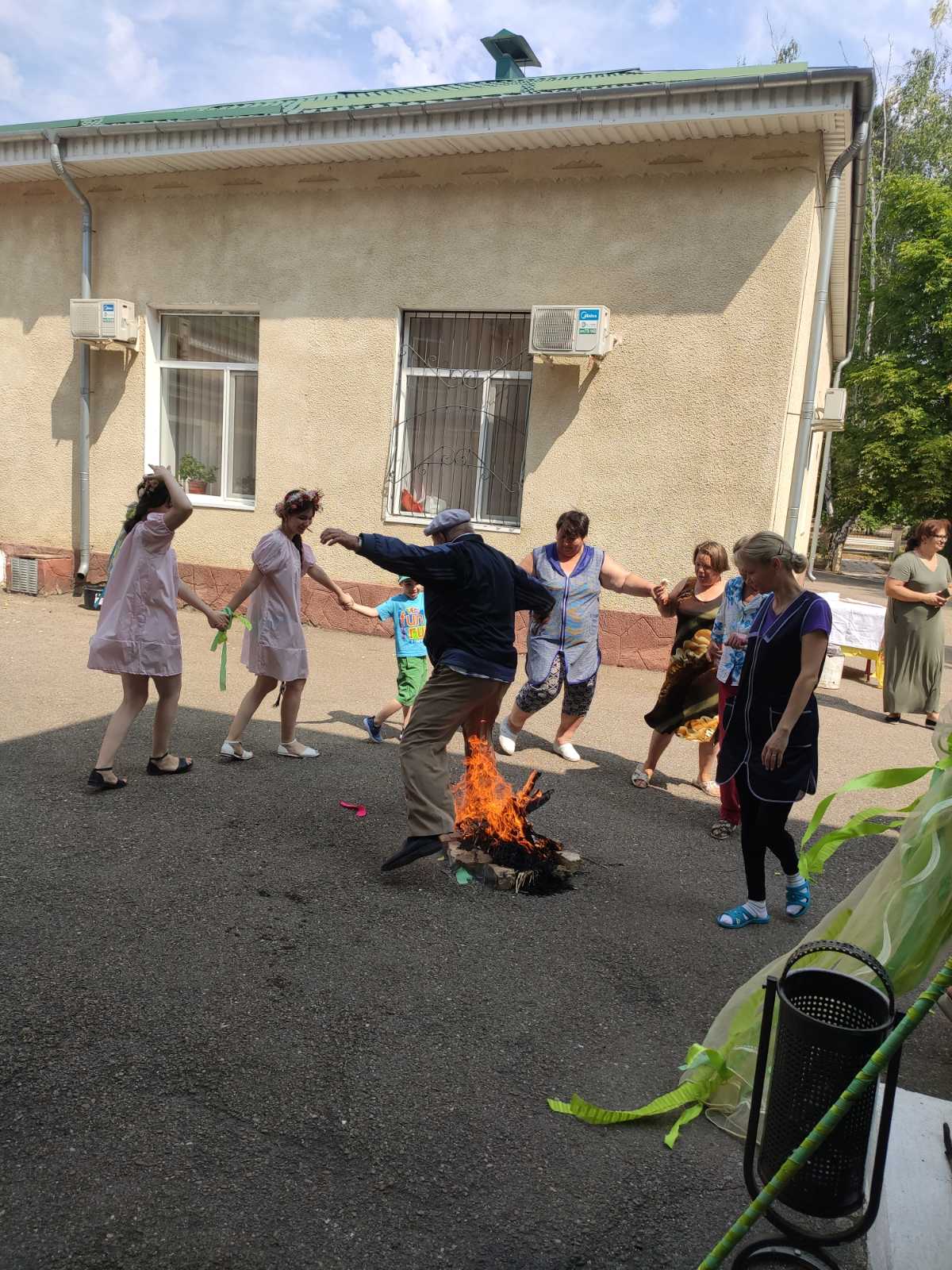 В день Ивана Купала есть еще одна традиция, перевязывания пучка из соломы и сжиганием его в купальском костре в надежде, что уйдут все беды и неприятности. Считается, что в праздник Купала огонь имеет очищающую силу. Зажечь костер в этот праздник предоставили единственному опекаемому Ивану в доме ветеранов. Жители и сотрудники с удовольствием прыгали через костер и сжигали пучки соломы. Нептун решил ввести еще одну традицию в этот день в доме ветеранов – варить уху да людей подчевать. Пришла и красавица Щука на помощь, рыбу принесла, традицию одобрила и ухи наварила!