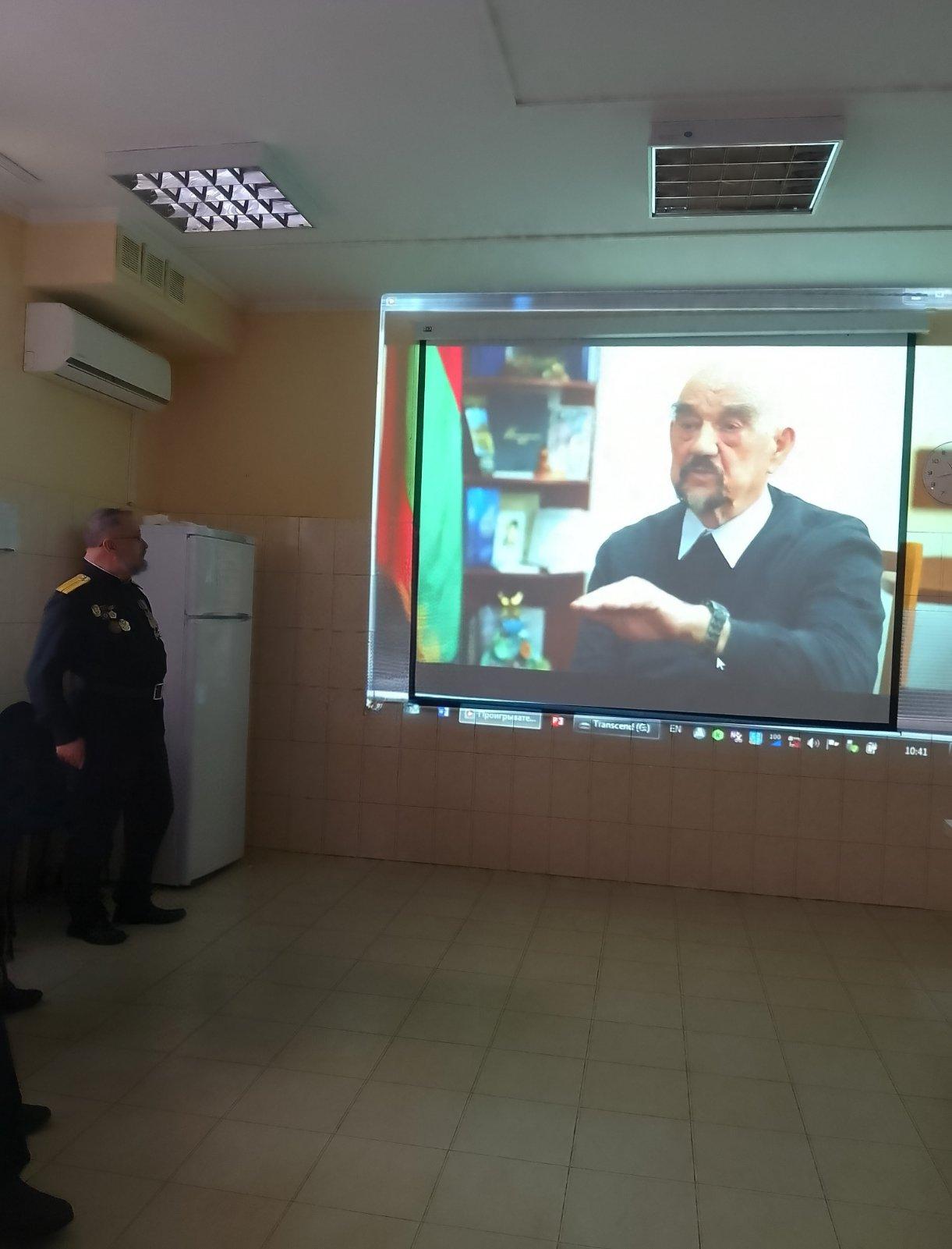 Выступление сопровождалось мультимедийной презентацией, включающей архивные материалы, даты и исторические события.